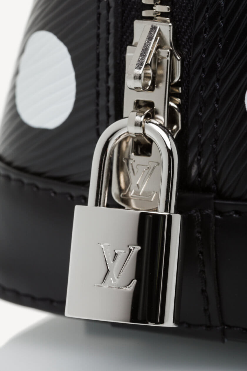 Acum, ca parte a unei noi colaborări majore, acele puncte multicolore sunt reproduse pe LVxYK Alma BB, serigrafiate pe pânza Monogram folosind un proces sofisticat care le oferă un efect de relief subtil.