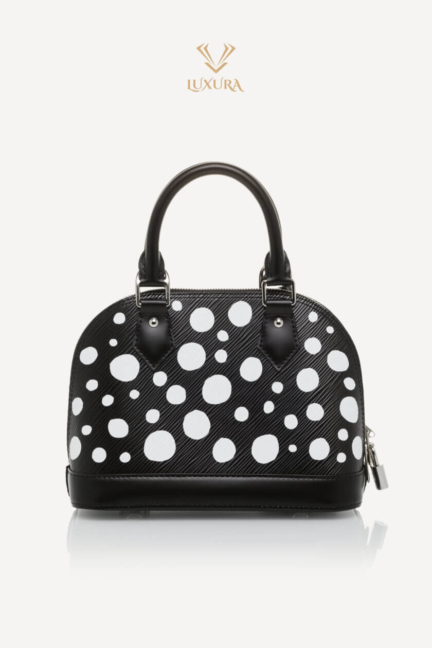 Tema „Infinity Dots” a noii colaborări Louis Vuitton x Yayoi Kusama oferă genții LV x YK Alma BB un aspect artistic optimist.