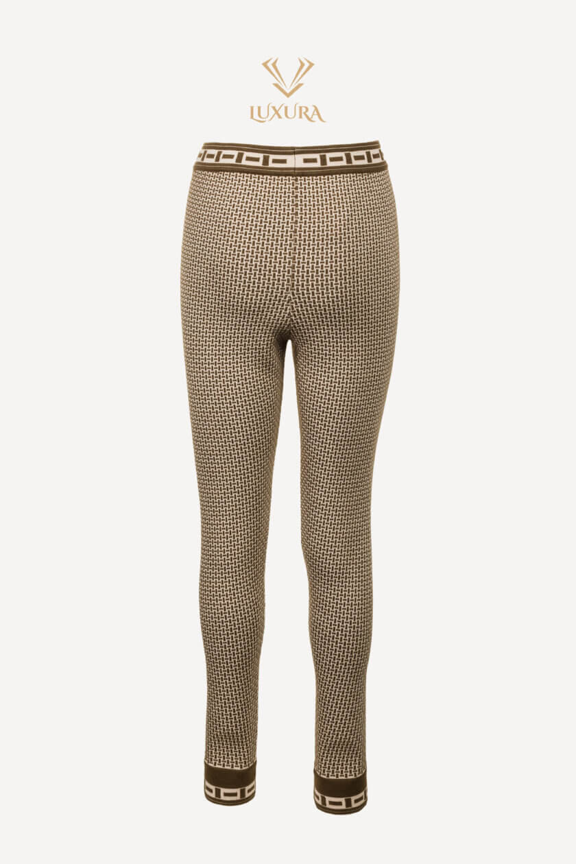 Leggings Hermes tundra din tricot jacquard sunt confecționate din 54% lână virgină, 41% polipropilenă, 4% poliamidă, 1% elastan cu talie și manșete cu detaliu „Mosaique”.