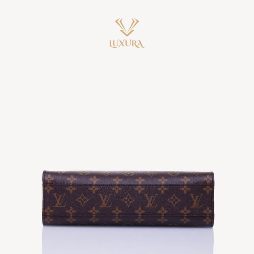 Geanta Sac Plat PM revizuiește un model iconic al casei cu un stil contemporan. Creația emblematică, realizată din pânză Monogram cu finisaje din piele naturală, prezintă interioare căptușite în țesătură roșie și completate de un buzunar cu fermoar.