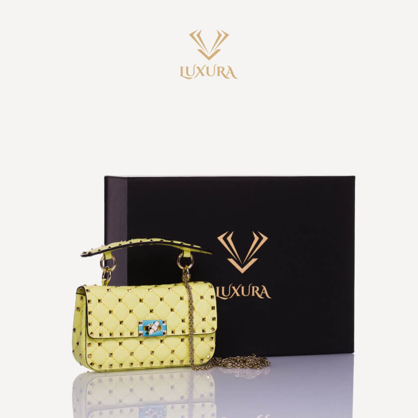 Adaugă o notă de rebeliune atât look-urilor de zi până la cele de seară, cât și de weekend, cu această geantă crossbody Rockstud Spike Small galbena de la Valentino Garavani.