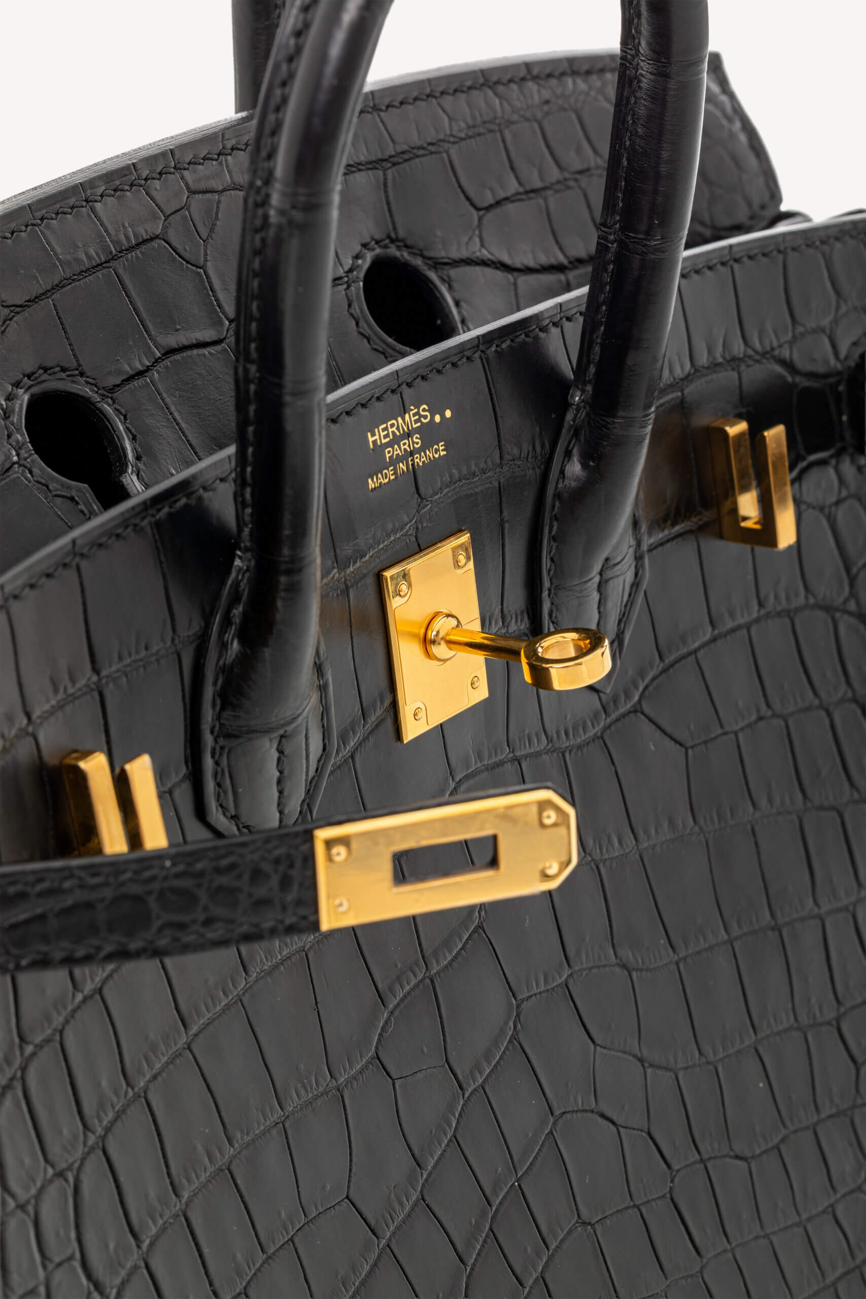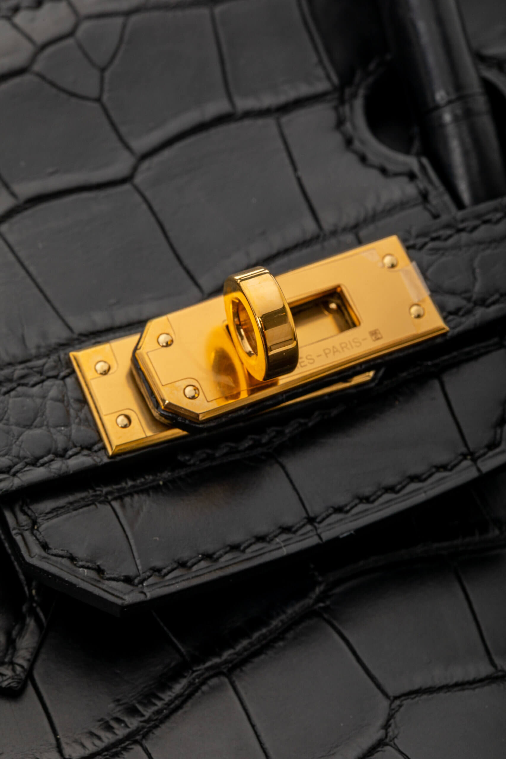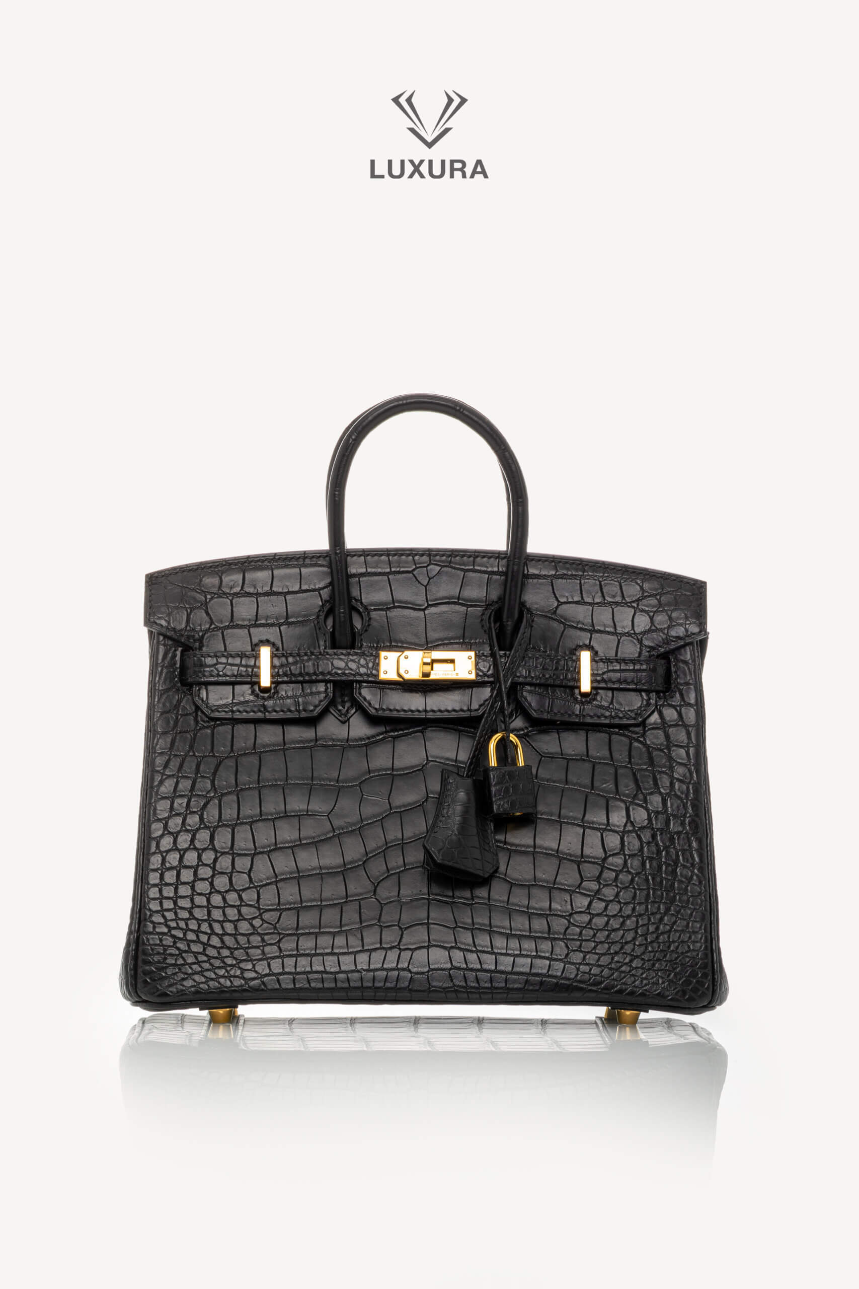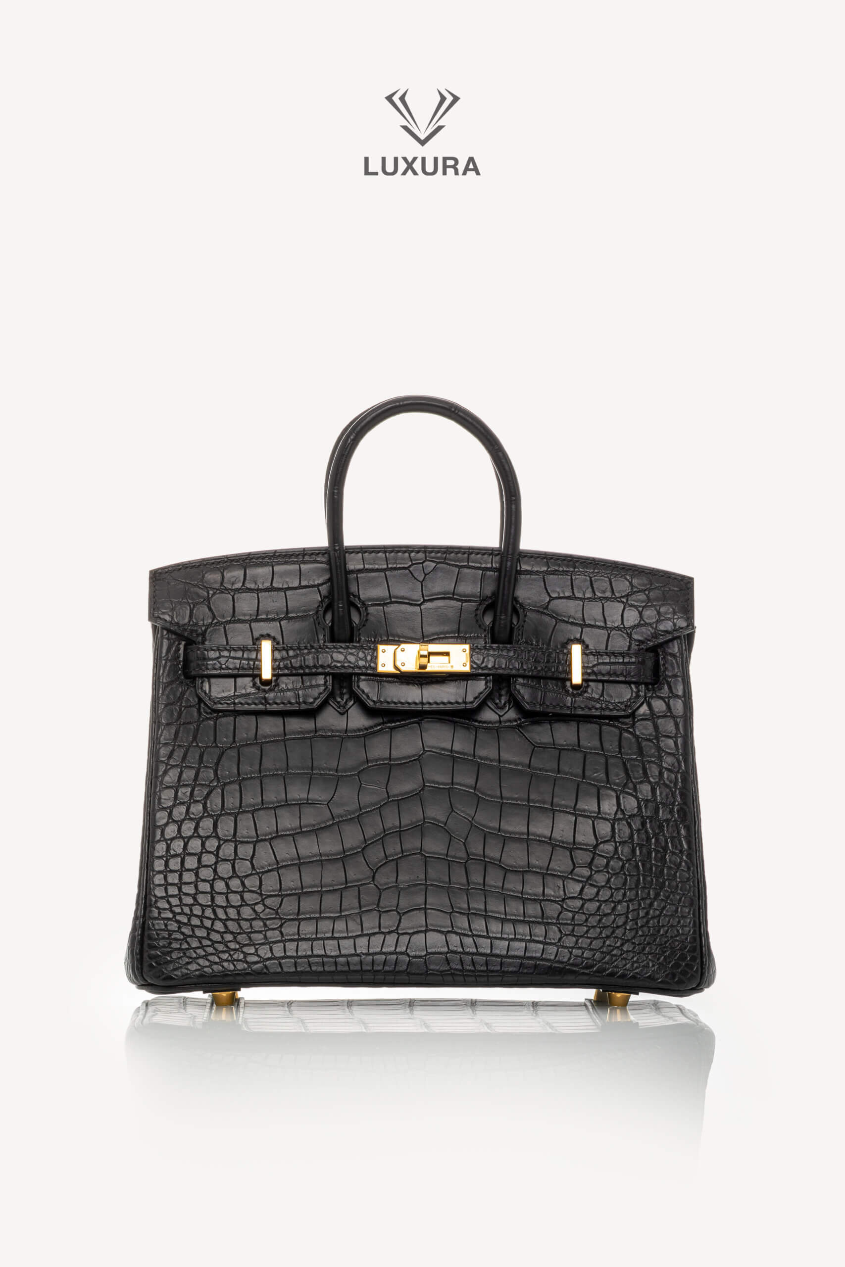 • Model: Birkin 25 Matte Black Niloticus Crocodile with Gold Hardware