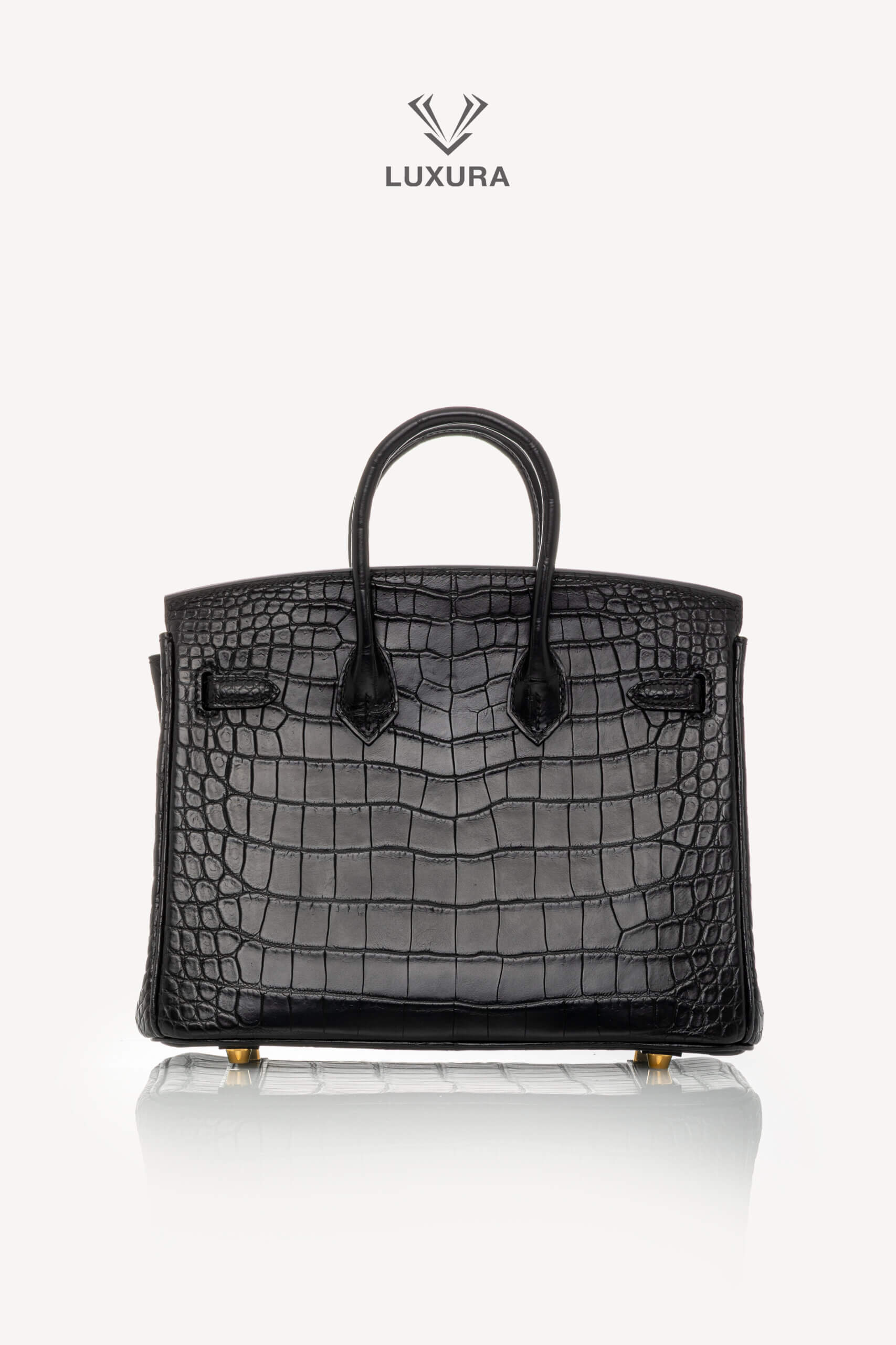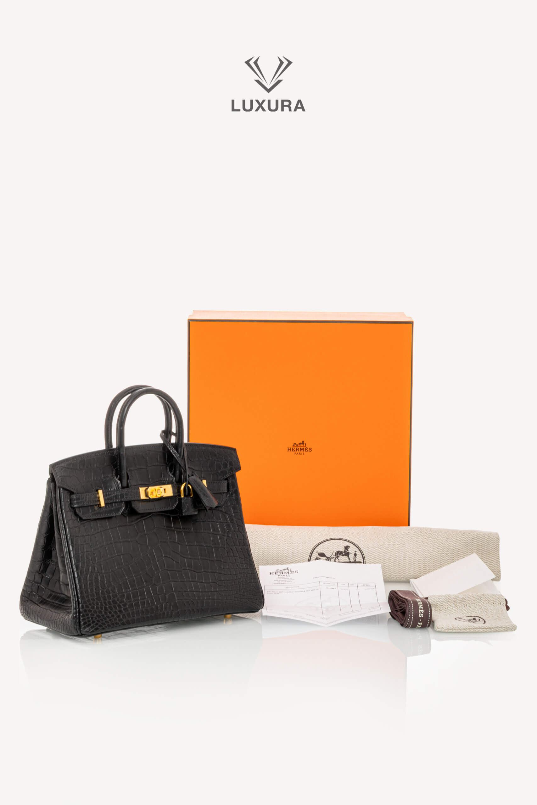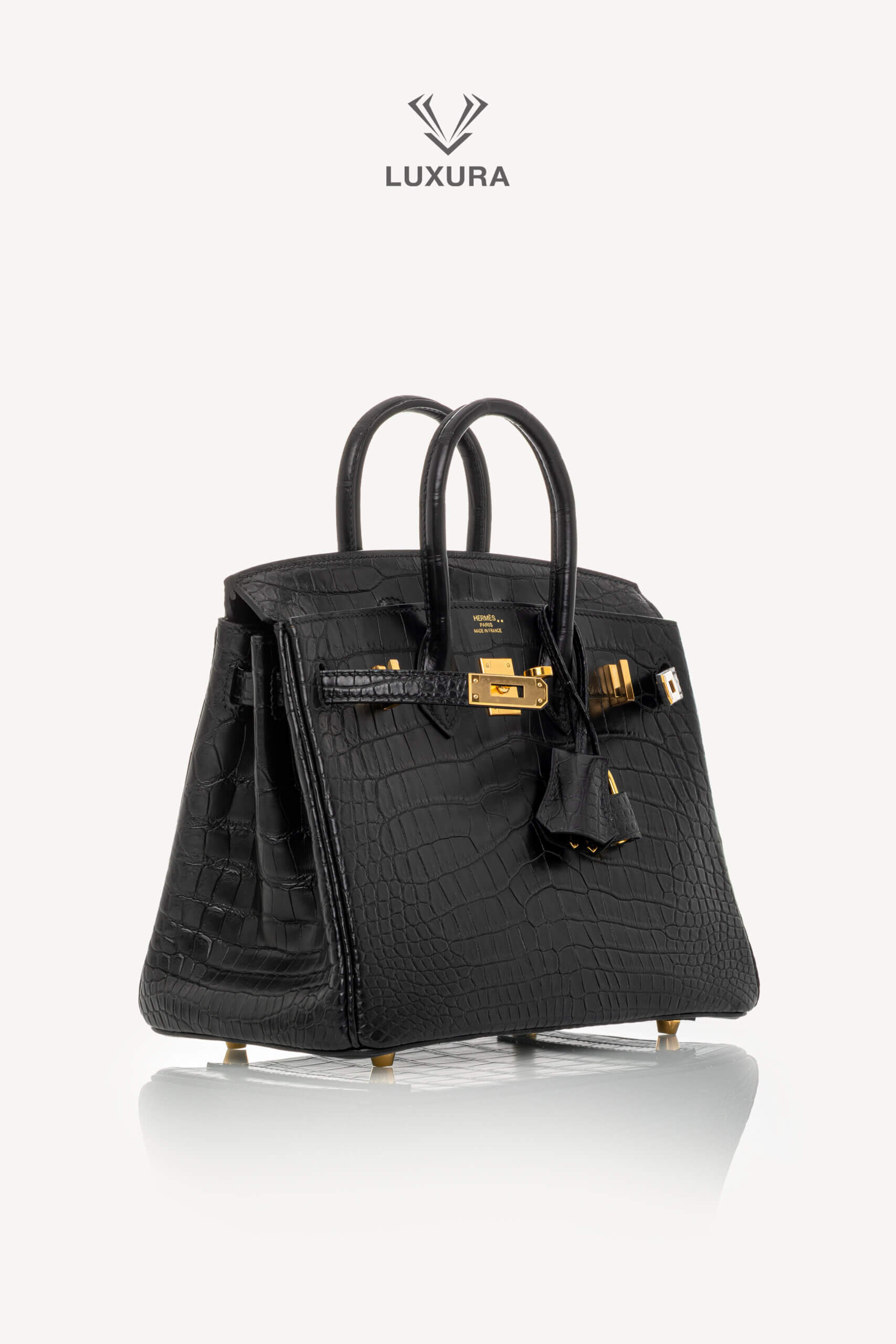 • Model: Birkin 25 Matte Black Niloticus Crocodile with Gold Hardware