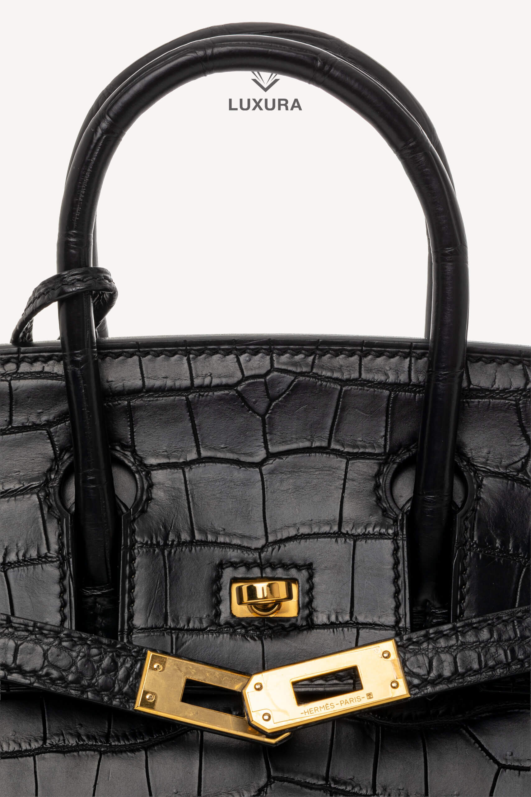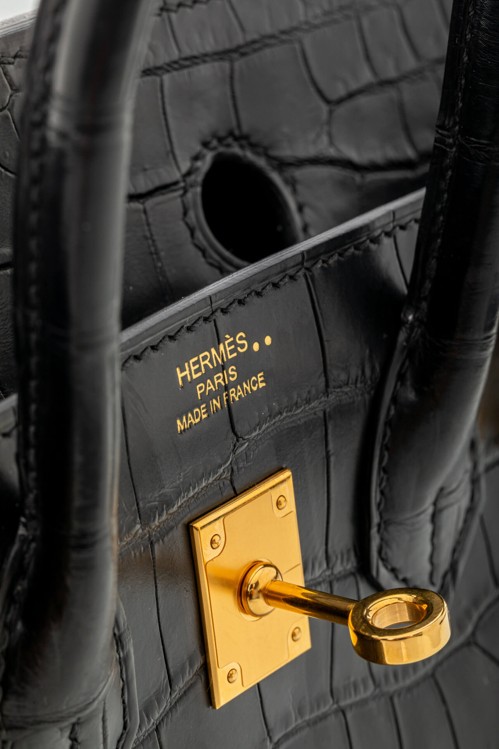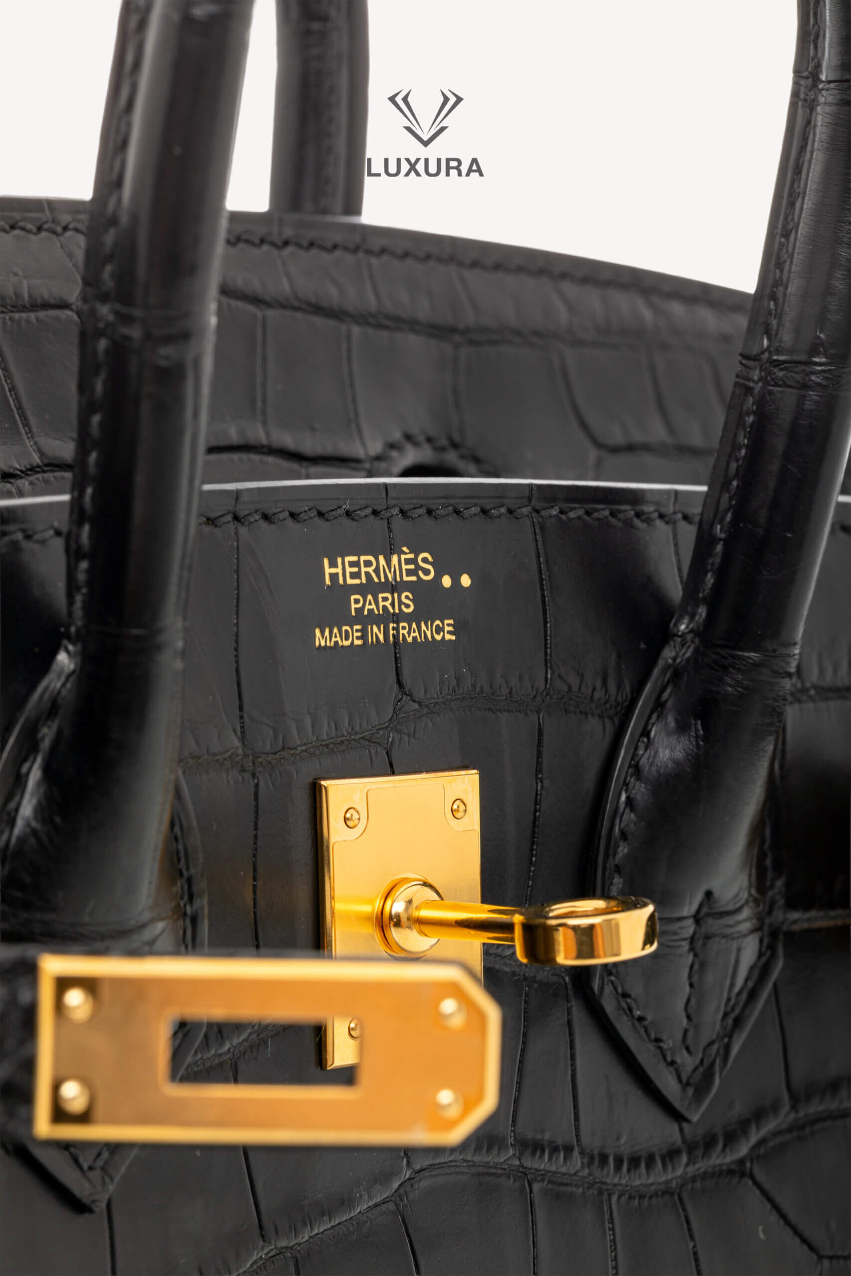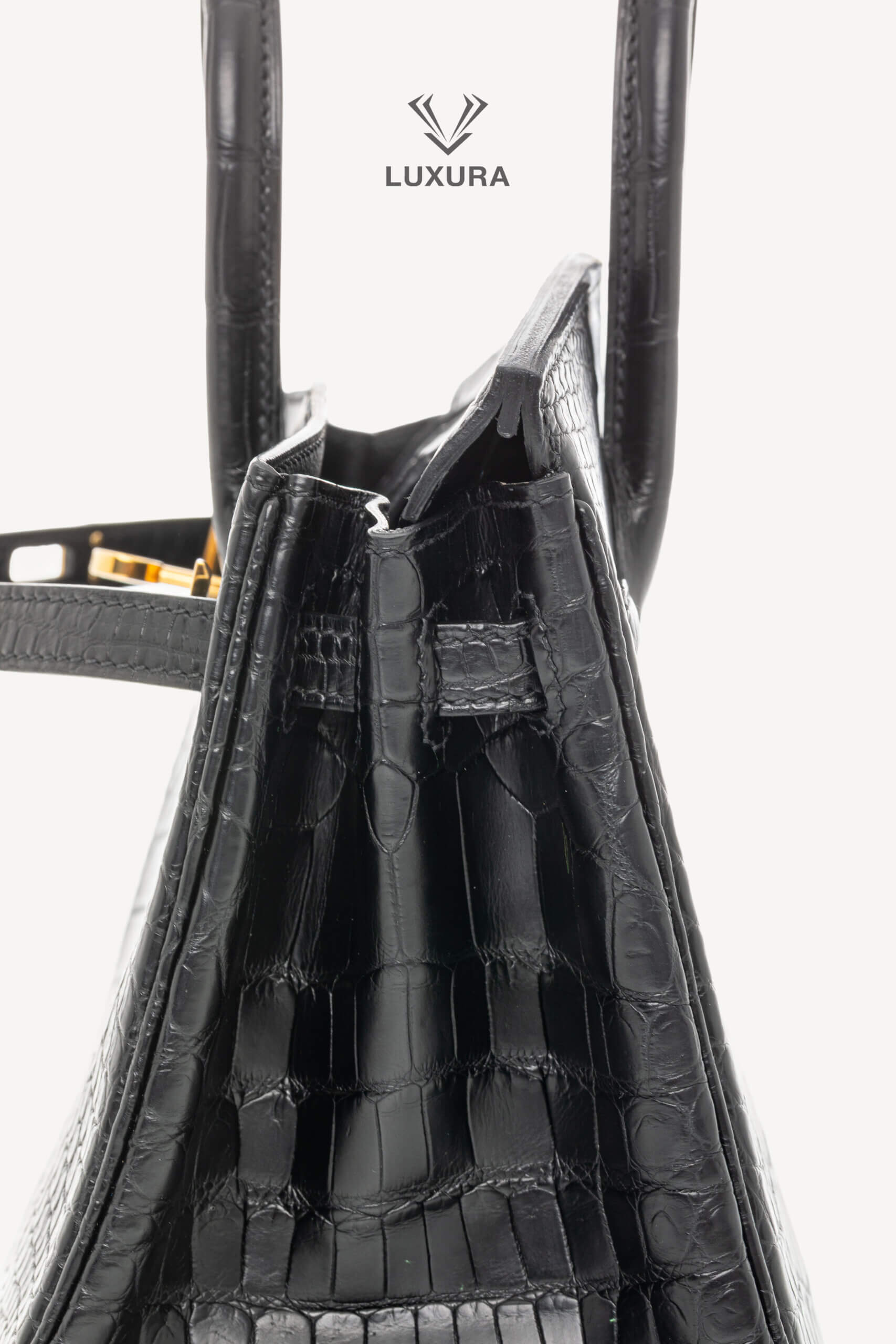• Model: Birkin 25 Matte Black Niloticus Crocodile with Gold Hardware