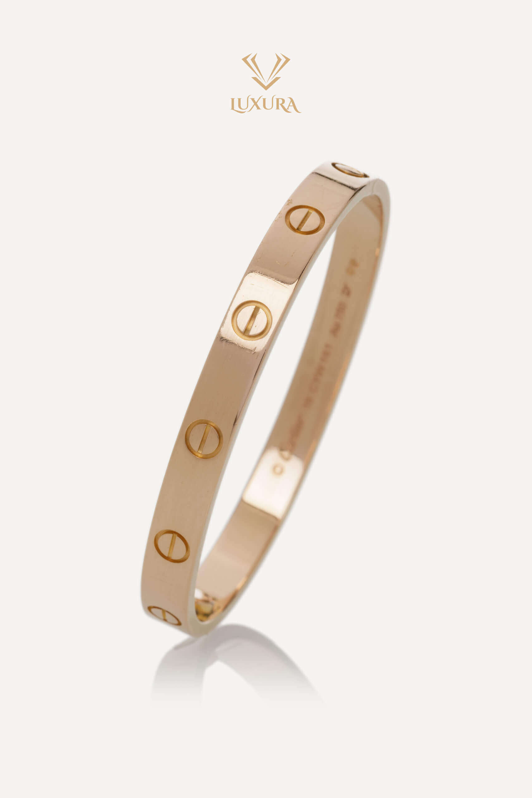 Creată de Aldo Cipullo în 1969 pentru a păstra amintirile frumoase închise pentru totdeauna în urma unei despărțiri, brățara Cartier Love este un legământ etern al iubirii. Inspirația designer-ului au fost centurile de castitate din Evul Mediu și pasiunea lui pentru obiectele tehnice de feronerie. Fiind o bijuterie timeless, o poți purta zi de zi și să te simți încătușat de focul aprins al iubirii. Realizată din aur alb.