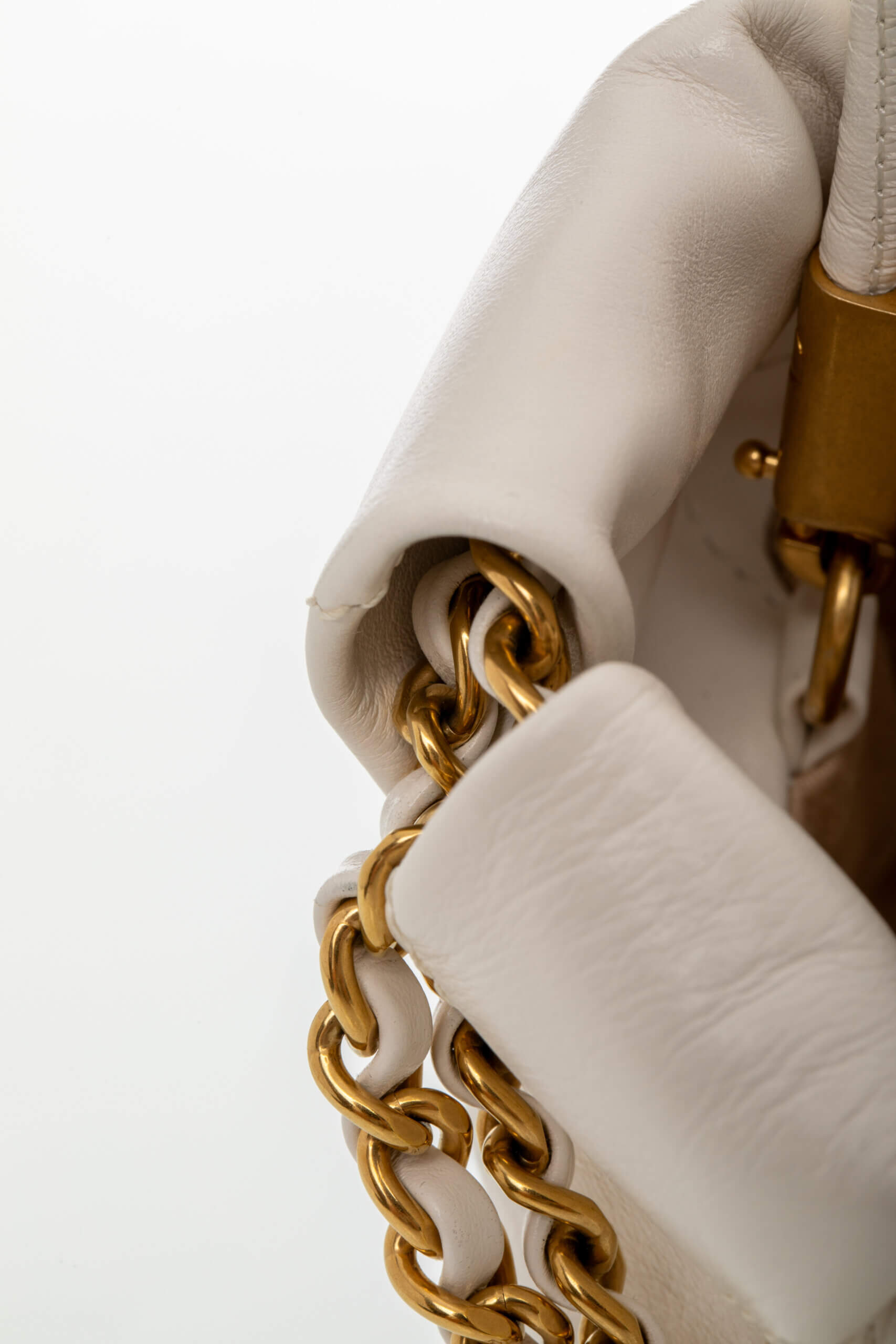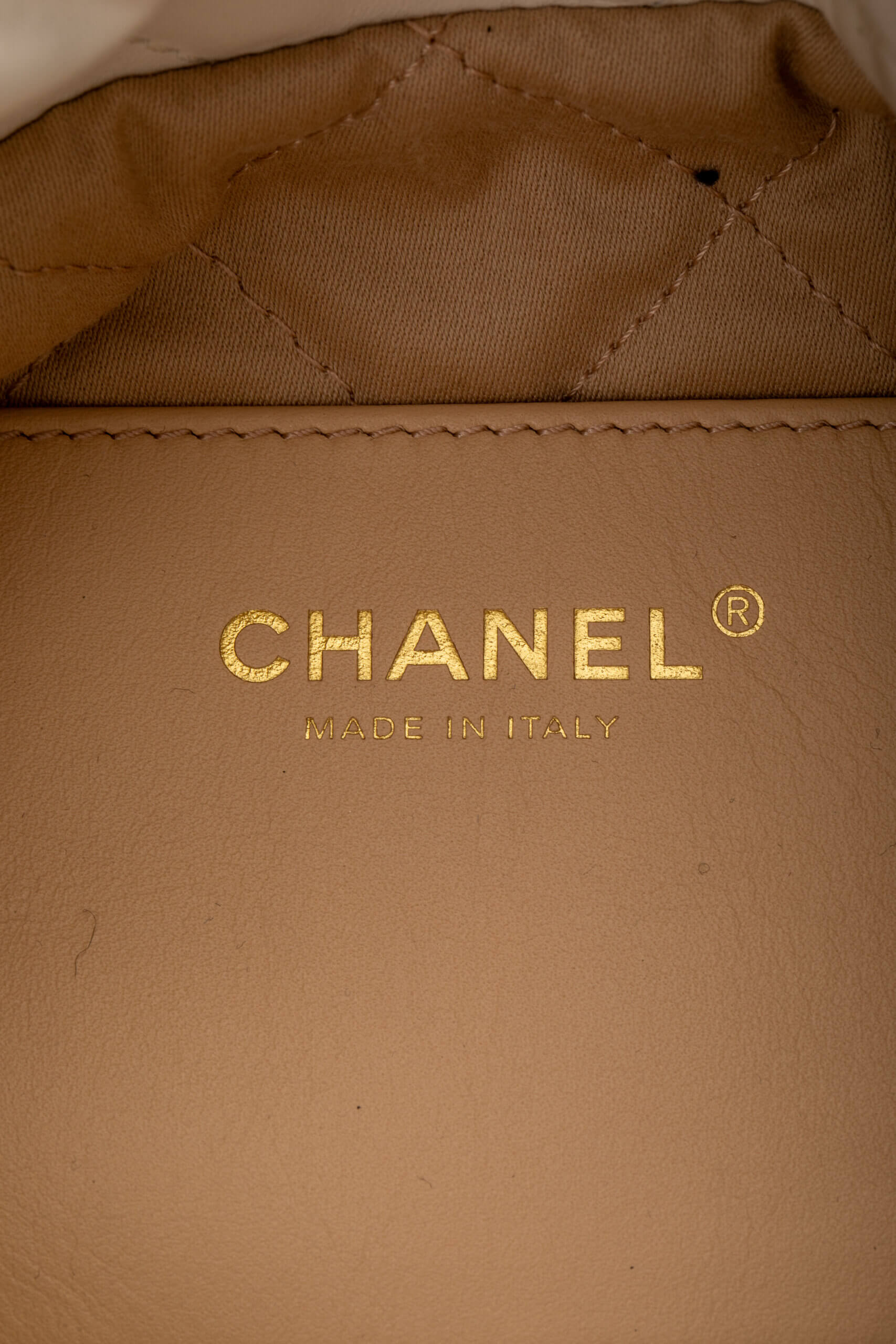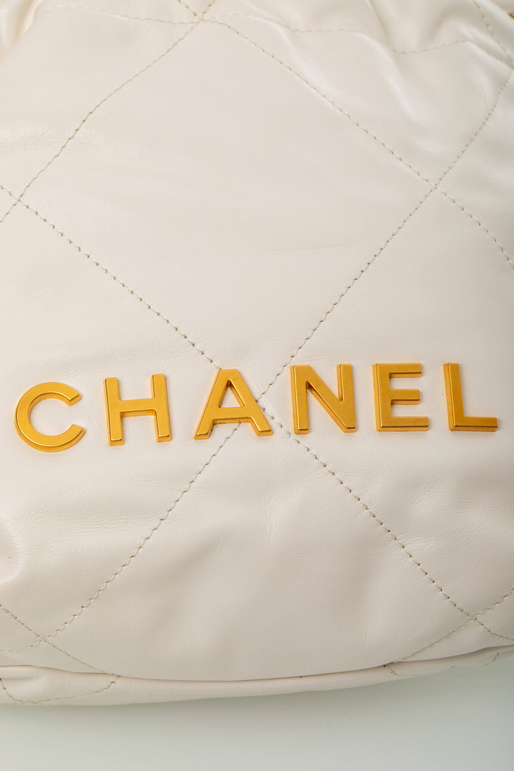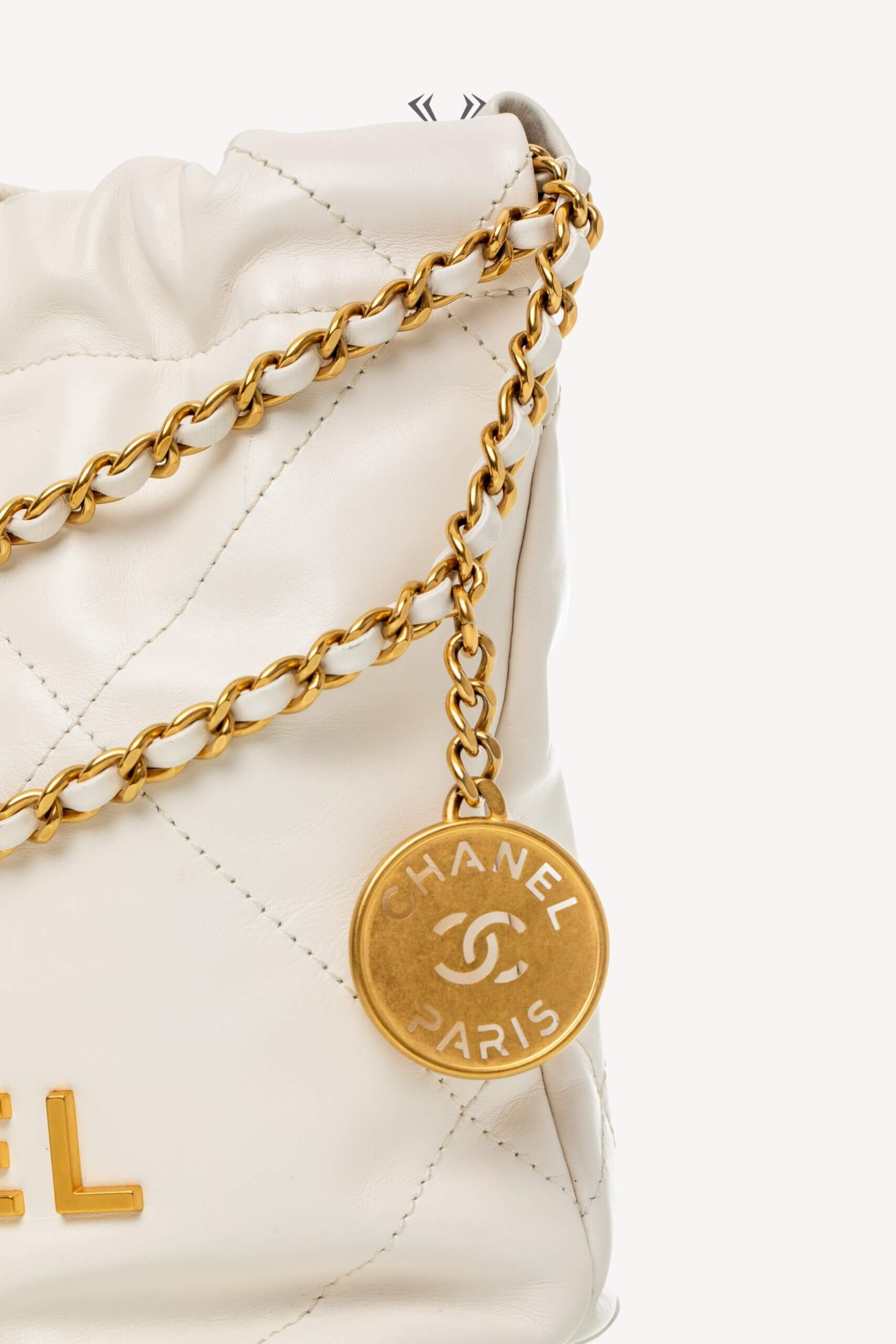 CHANEL Shinny Calfskin Quilted Mini Chanel 22 White Alb, Bej – Genti de colecție