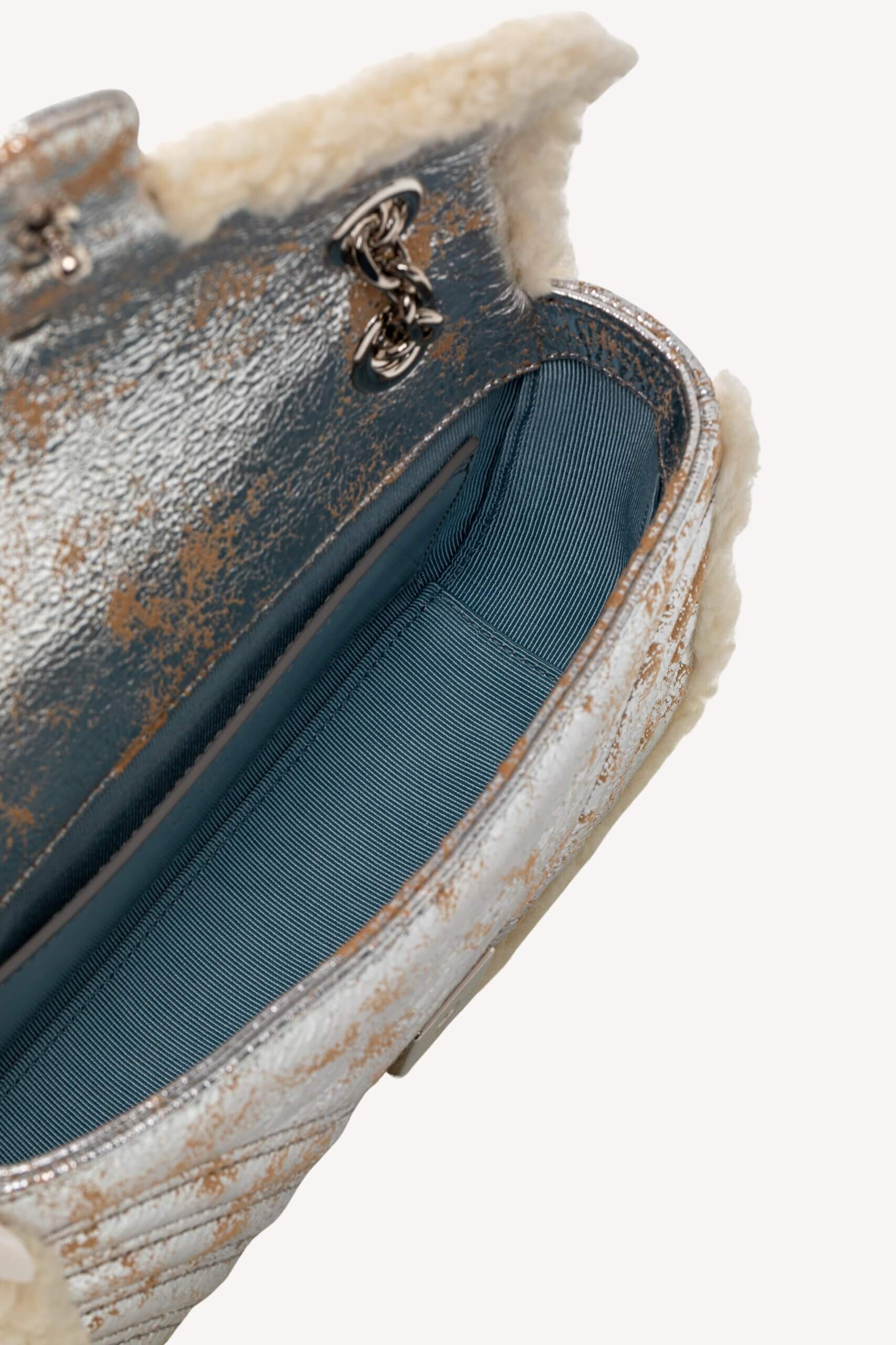 GUCCI GG Marmont Medium Metallic Leather Shoulder Bag Argintiu, Albastru – Accesorii de colecție