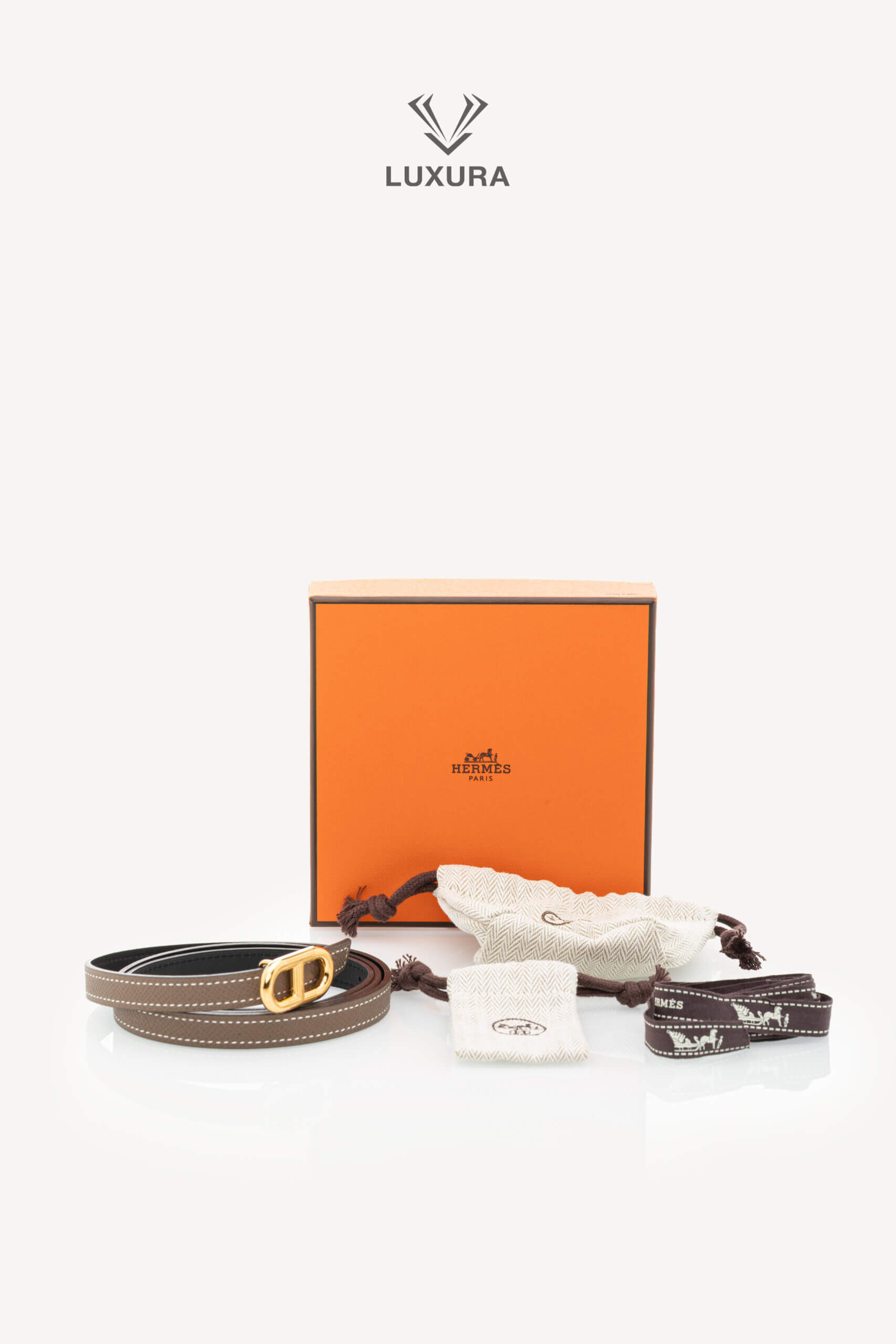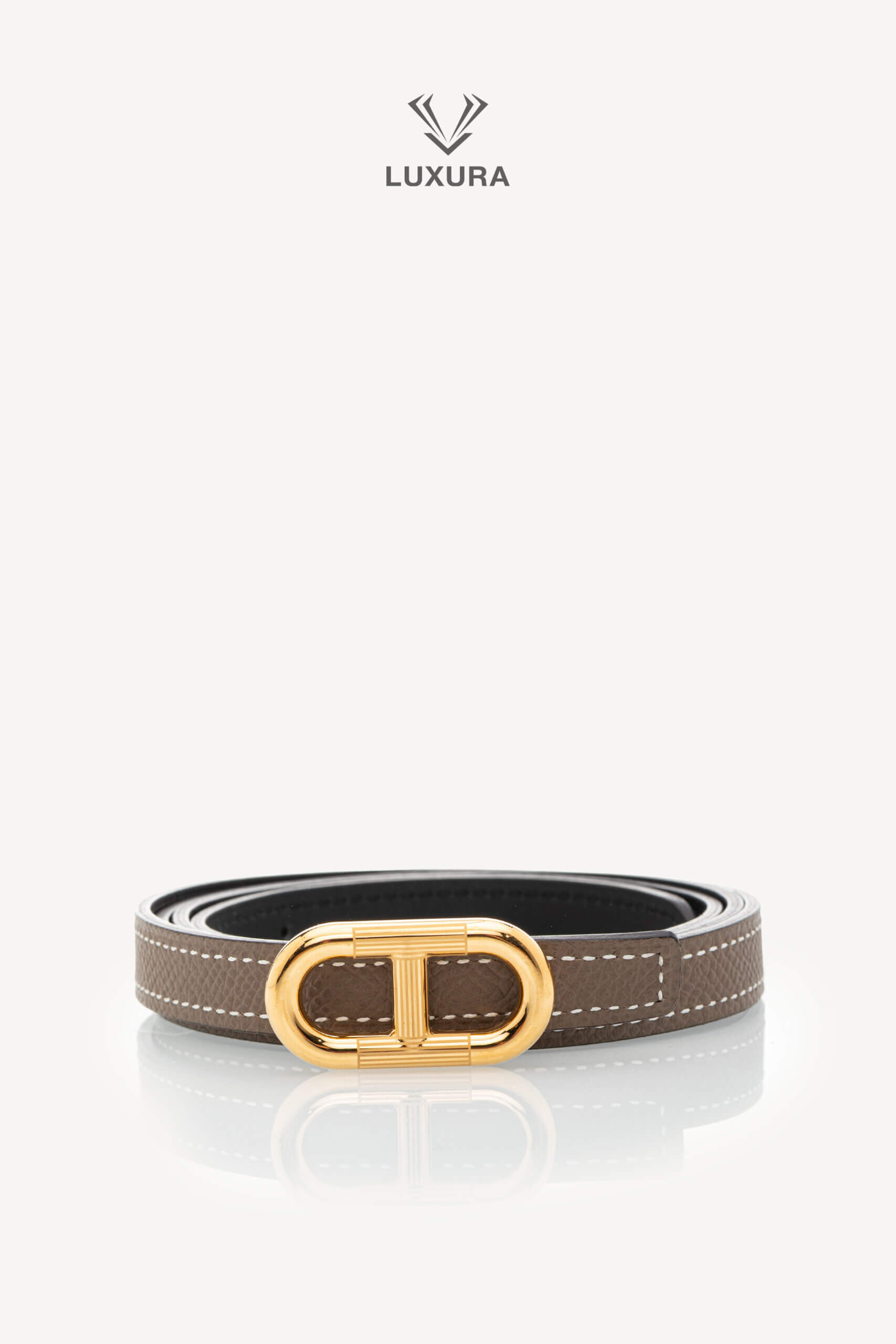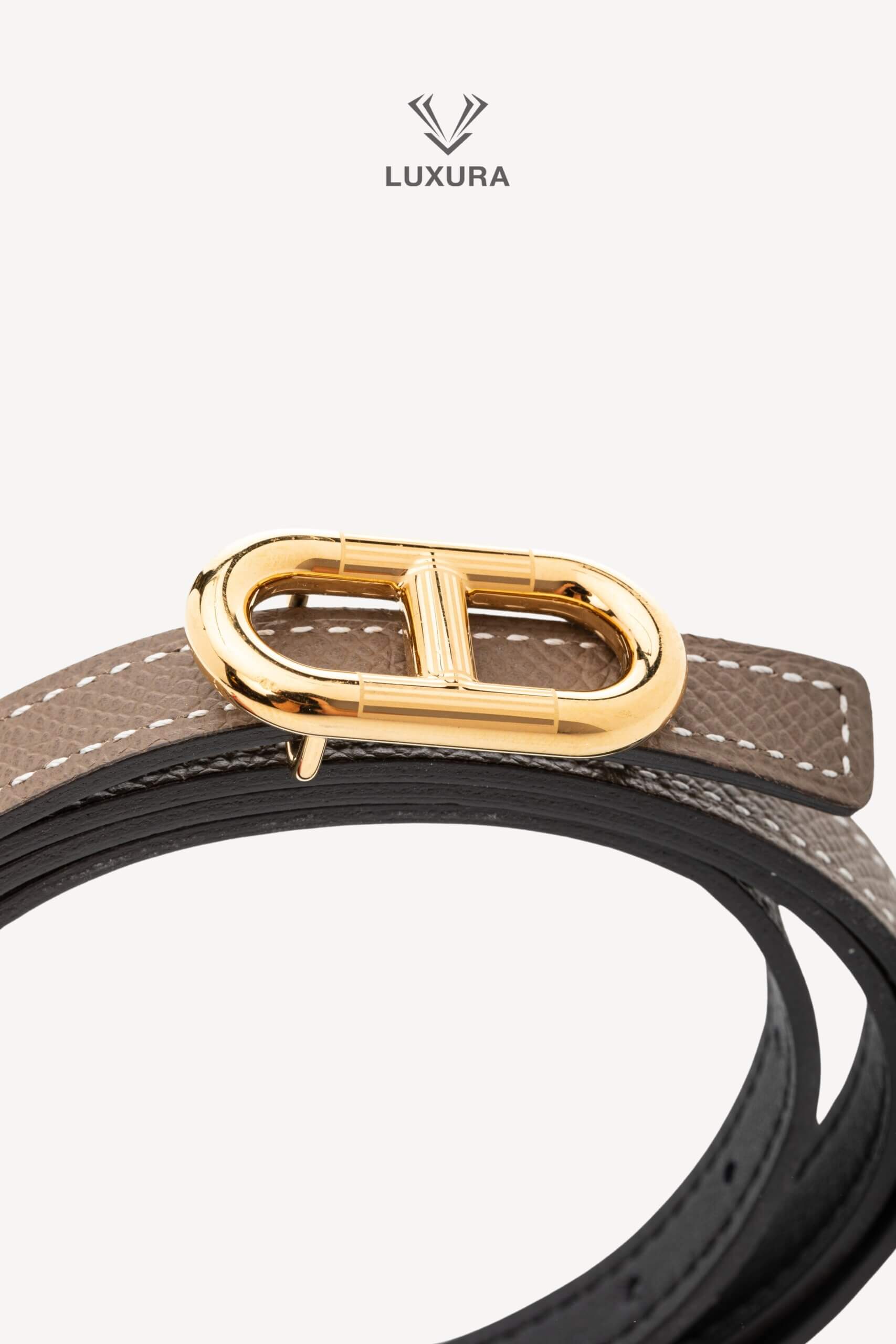 HERMES Swift Epsom 13mm Maillon H Belt Noir / Etoupe, Noir / Etoupe – Accesorii de colecție
