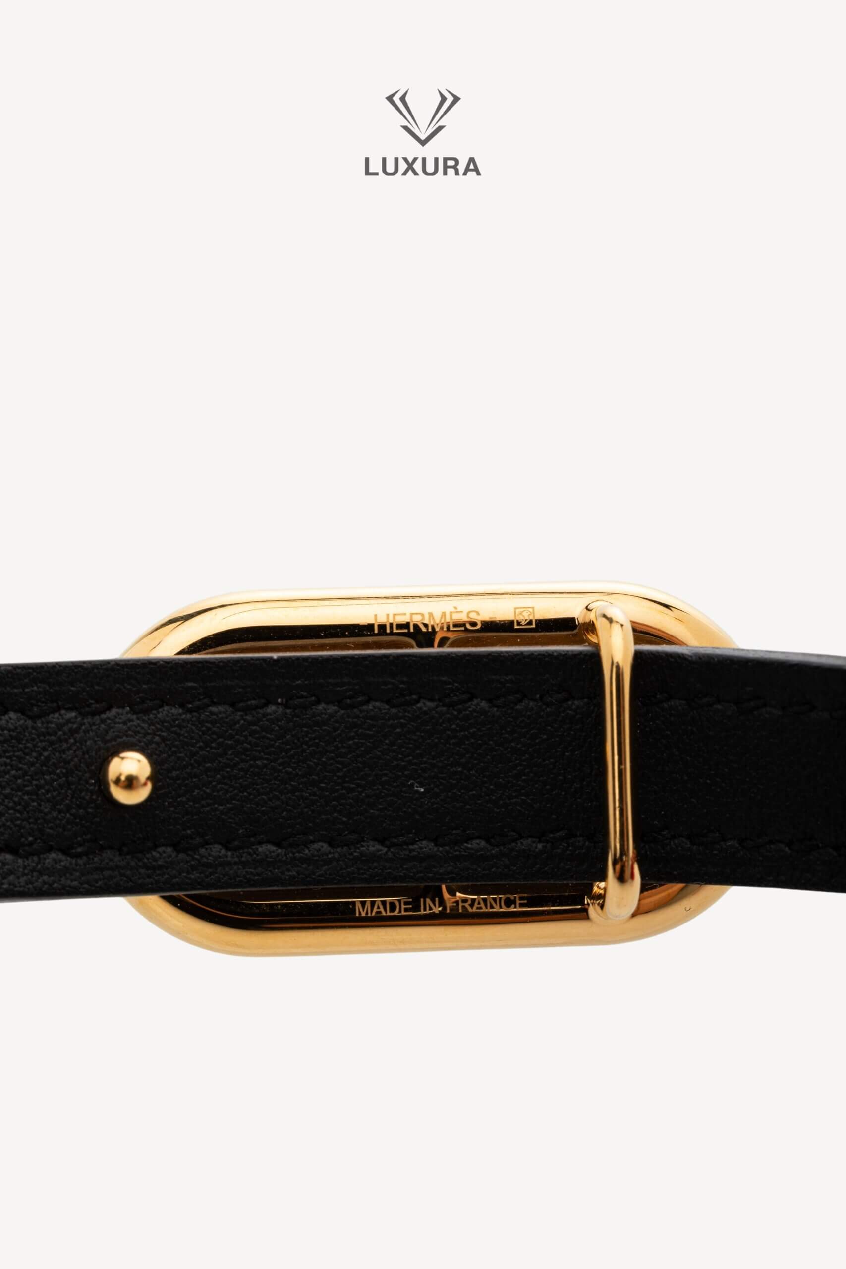 Curea Hermes Swift Epsom Maillon H de 13 mm, realizată din piele Swift și Epsom, combină rezistența cu un aspect elegant. Culoarea Noir / Etoupe oferă o versatilitate discretă, completată de elementele hardware aurii. Produsul este pre-owned, nou,  autentificat, fiind livrat împreună cu dust bag, cutia originală și certificatul de conformitate. Dimensiunea curelei este de 90 cm lungime si 1.3 cm latime, adaptabilă pentru accesorii de lux cu profil subțire.