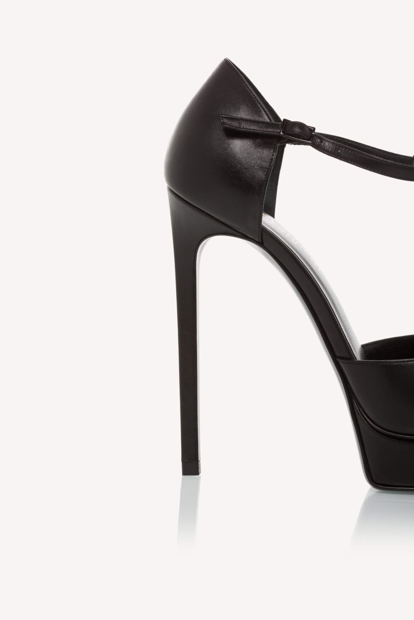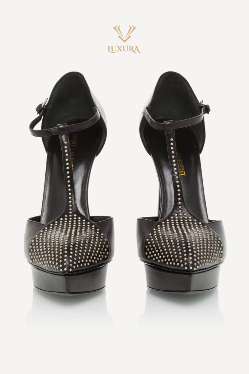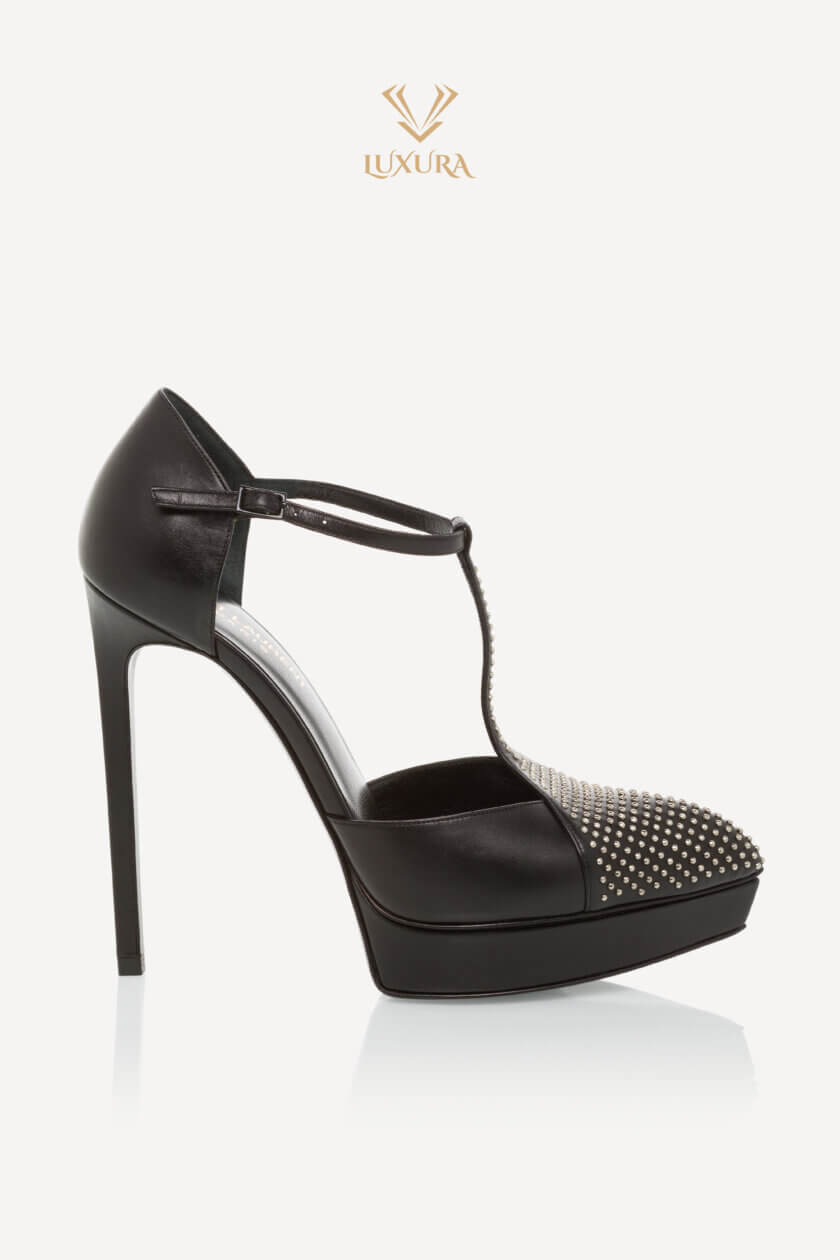 Sunt proiectați cu o curea în formă de T în față și detaliu cu micro știfturi pe bot, au o curea reglabilă pentru gleznă, iar înălțimea tocului măsoară 13 cm și platforma este de 2,5 cm.